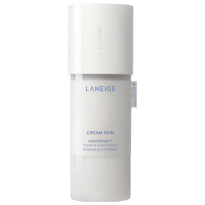 Next, I reach for the Cream Skin Refillable Toner & Moisturizer with Ceramides + Peptides. This product is a game-changer—it’s a toner and moisturizer in one, which means it hydrates deeply without any extra steps. I pour a bit onto my palms, press it gently into my skin, and let it absorb. My skin drinks it up! It’s lightweight, so it doesn’t feel heavy, but I can really feel the moisture barrier being rebuilt.