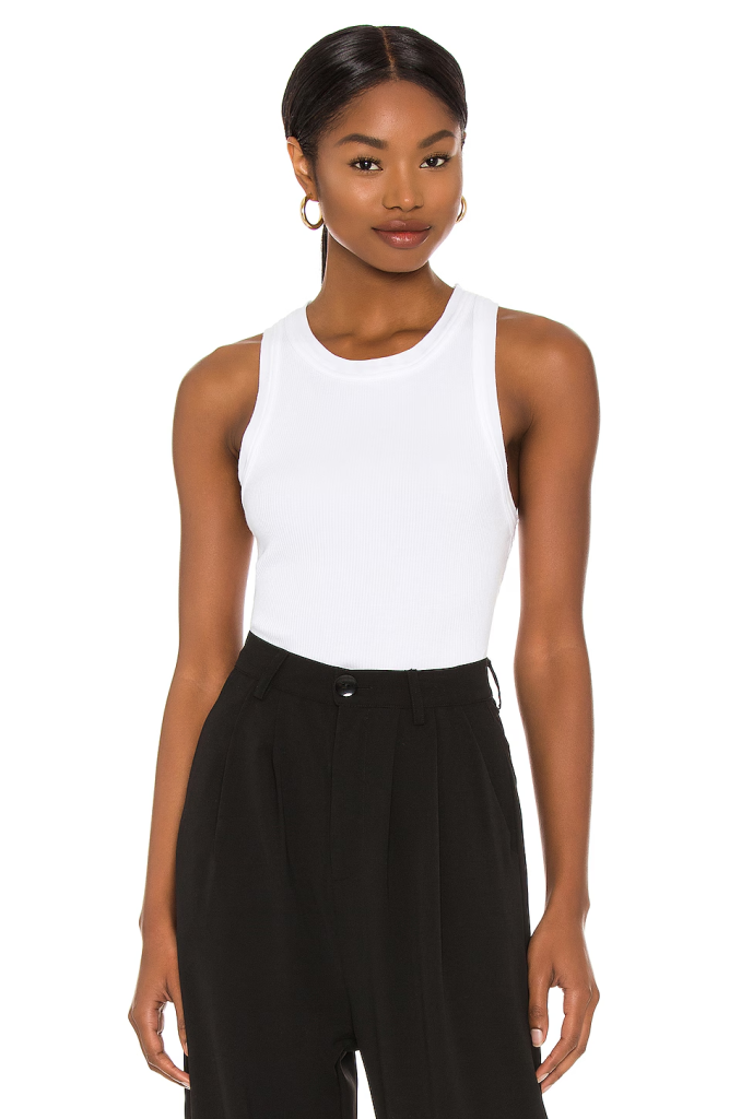 Let’s start with the foundation: the Isabel Rib Tank by Citizens of Humanity. Every closet needs that go-to white tank, and this one is a true essential. The ribbed texture makes it feel a little more elevated than a regular tee, and the fit is flattering without being too tight. This top is the ultimate blank canvas, letting me style it up or down, and it’s versatile enough to go with almost anything. On its own, it’s simple and clean—but paired with the right pieces, it can transform into something that looks way more polished.